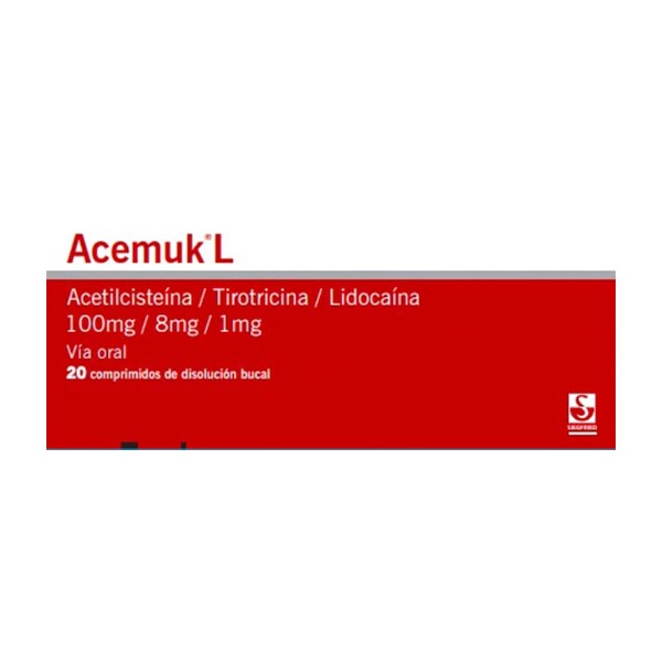 Acemuk L es la solución única que combina un mucolítico con un antiséptico bucofaríngeo. Mientras la N-Acetilcisteína ayuda a fluidificar las flemas para facilitar su expulsión, su componente suavizante alivia la irritación de la garganta. Al ser un comprimido de disolución bucal, actúa directamente en la zona afectada, brindando una sensación de bienestar inmediata. La venta por unidad es perfecta para llevar en el bolsillo y usar ante el primer síntoma de molestia.