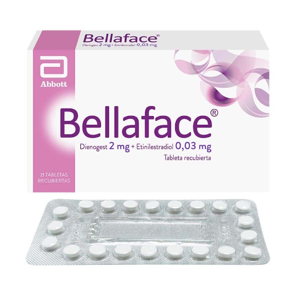 Bellaface es un anticonceptivo oral combinado de alta eficacia que une el Etinilestradiol (0.03 mg) y el Dienogest (2 mg). Esta fórmula equilibrada no solo te brinda una protección segura contra embarazos no deseados, sino que es ampliamente reconocida por su “efecto belleza”: ayuda a reducir las lesiones de acné, controla la piel grasa y disminuye el vello excesivo de origen hormonal. Con su presentación de 21 tabletas, permite un ciclo regular y predecible. ¡Siéntete protegida y radiante todos los días!