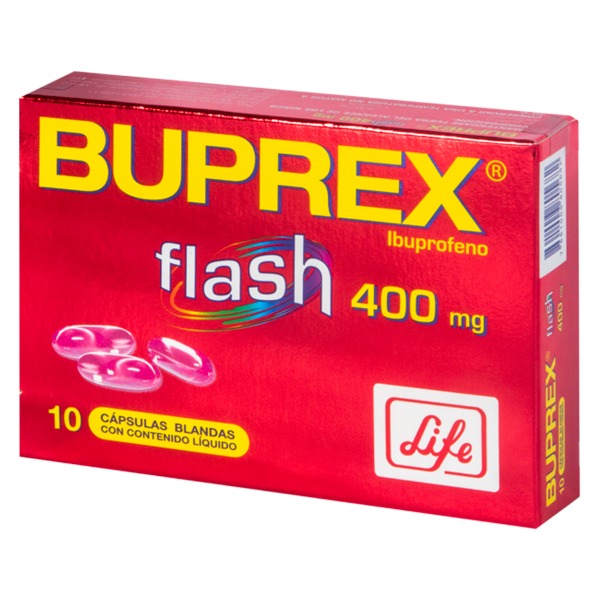 Principio Activo: Ibuprofeno 400 mg.rnrnPresentación: Tableta de rápida absorción (Venta individual/suelta).rnrnAcción Principal: Analgésico (quitar dolor), Antiinflamatorio (reducir hinchazón) y Antipirético (bajar fiebre).rnrnIndicaciones: Dolor de cabeza, fiebre, inflamación post-quirúrgica, dolores musculares y articulares.rnrnVentajas: Tecnología “Flash” que reduce el tiempo de inicio de acción, permitiendo sentir alivio mucho más rápido.