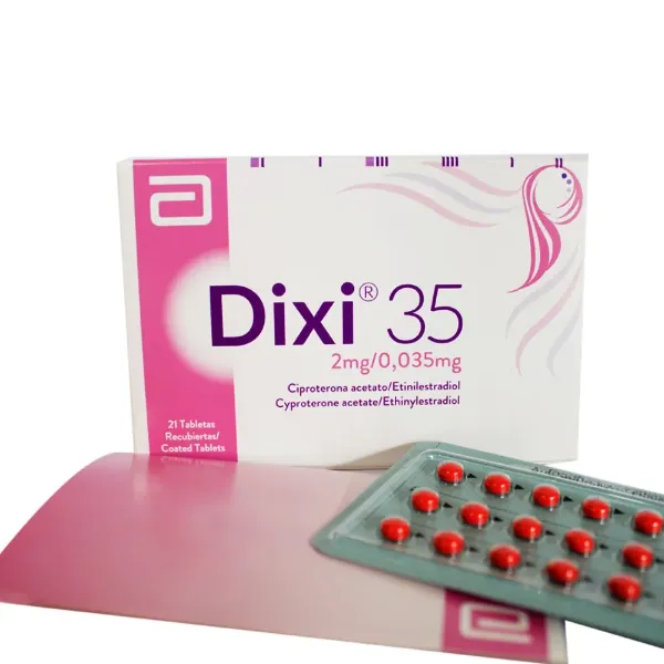 Recupera la confianza en tu piel con Dixi 35. Formulado con Ciproterona y Etinilestradiol, este medicamento es el estándar de oro para tratar el acné persistente, la piel excesivamente grasa y el crecimiento de vello no deseado causado por desequilibrios hormonales. Al actuar directamente sobre las hormonas que afectan las glándulas sebáceas, Dixi 35 limpia tu rostro desde el interior. Además, funciona como un anticonceptivo oral altamente eficaz. ¡El aliado perfecto para una piel sana y un ciclo regulado!