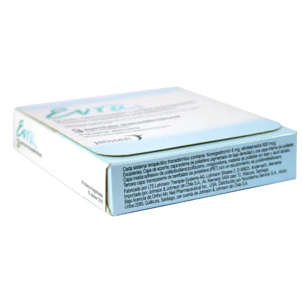 Simplifica tu vida con Evra. Olvídate de las alarmas diarias y la preocupación de olvidar tu pastilla. El parche transdérmico Evra libera hormonas de manera continua a través de la piel, ofreciendo una protección superior contra el embarazo con una sola aplicación a la semana. Es discreto, delgado y diseñado para resistir tu ritmo: puedes hacer ejercicio, nadar o bañarte sin que pierda su adherencia. Con la caja de 3 parches, tienes cubierto todo tu ciclo mensual. ¡Seguridad invisible para que tú sigas brillando!
