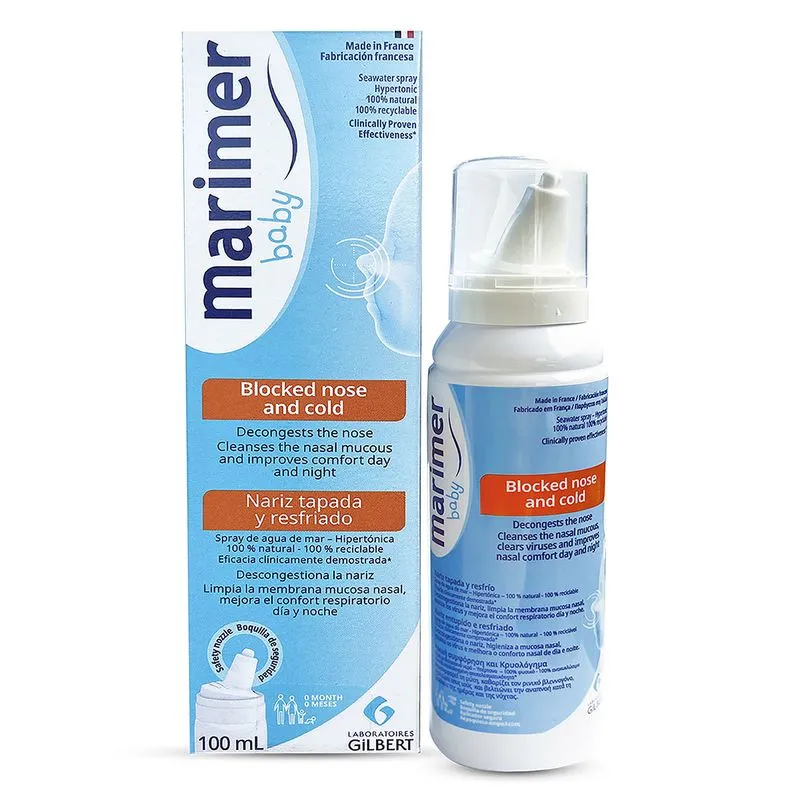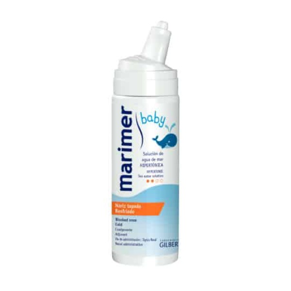 ¿Tu bebé tiene la nariz muy tapada por un resfriado o rinosinusitis? Marimer Baby Hipertónico es una solución de agua de mar 100% natural, enriquecida con sales minerales y oligoelementos. Su fórmula hipertónica ayuda a “deshinchar” la mucosa nasal de forma natural (por efecto de ósmosis), facilitando la expulsión de moco espeso y despejando las vías respiratorias rápidamente. Gracias a su boquilla de seguridad diseñada especialmente para recién nacidos y niños pequeños, la aplicación es suave y sin riesgos. ¡Devuélvele la calma a su respiración con Marimer!