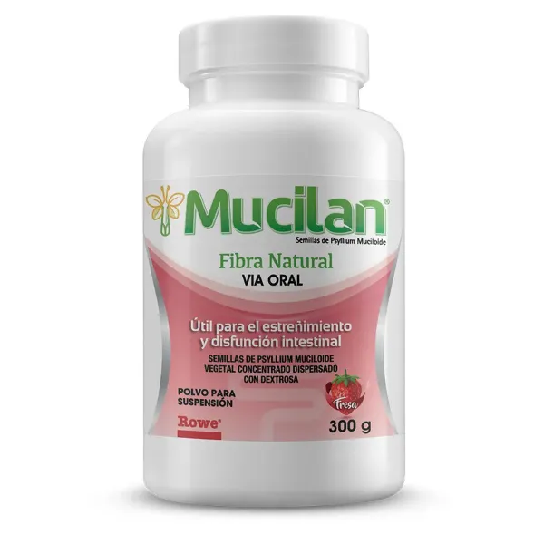 Recupera la ligereza y el ritmo natural de tu cuerpo con Mucilan. Este suplemento de fibra natural (Psyllium Plantago) es el aliado perfecto para combatir el estreñimiento de forma suave y efectiva. A diferencia de otros suplementos, Mucilan tiene un delicioso y refrescante sabor a fresa que hace que cuidar tu salud digestiva sea un placer diario. Su presentación en tacho de 300g te ofrece la cantidad ideal para mantener tu sistema regular por más tiempo. ¡Siente la diferencia de una digestión feliz!