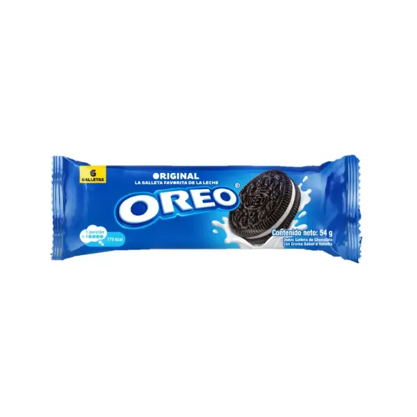¿Gira, lame y sumerge? ¡Claro que sí! El Oreo Taco de 54g te trae las galletas de chocolate favoritas del mundo con su inconfundible crema sabor a vainilla. Es la porción perfecta para acompañar tu vaso de leche, llevar en la mochila o disfrutar como ese premio especial en tu descanso. Crujientes, cremosas y siempre deliciosas, las Oreo son el snack que nunca pasa de moda. ¡Abre un taco de felicidad y comparte la magia!