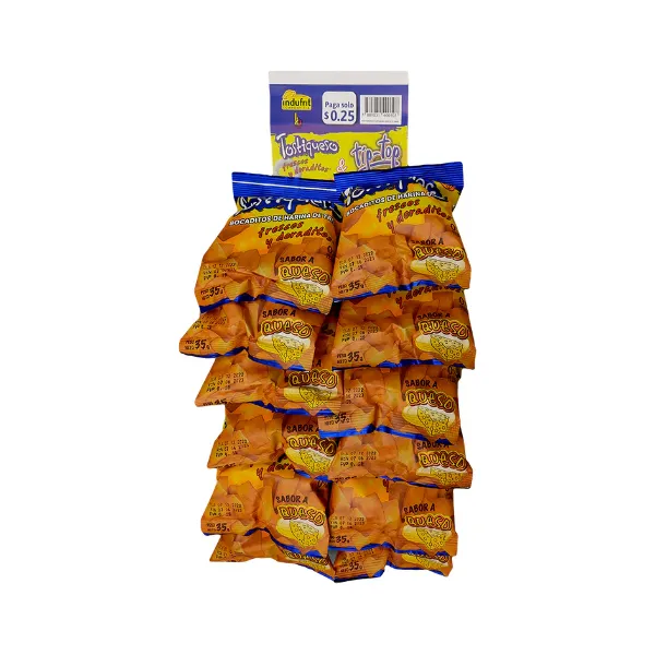 Producto: Extruido de maíz con sabor a queso.rnrnContenido neto: 35 gramos.rnrnTextura: Ultra crujiente.rnrnPresentación: Tira individual de tamaño grande.rnrnIdeal para: Loncheras, snacks de oficina o picaditas rápidas.