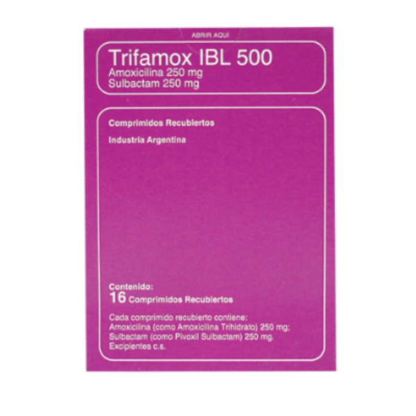 No dejes que una infección se complique. Trifamox IBL es la combinación inteligente de un antibiótico potente con un protector (Sulbactam) que evita que las bacterias se defiendan. Es la opción ideal para tratar cuadros respiratorios, urinarios o dentales de forma contundente. Al estar disponible por comprimidos sueltos, puedes llevar exactamente la cantidad que tu médico te ha recetado, asegurando un tratamiento completo y responsable. ¡Recupera tu salud con el estándar de oro en antibióticos!